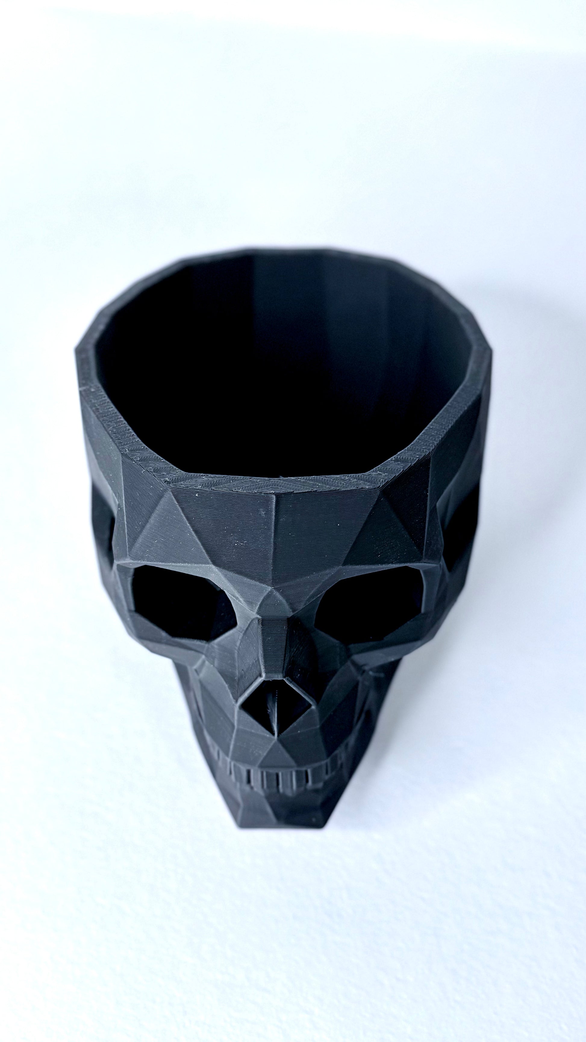 A striking blend of art and utility - the Low Poly Skull Candy Basket transforms any room into a statement of modern design. Its faceted, angular geometry gives a contemporary low-poly look, while the realistic contours bring lifelike depth and presence to the piece.